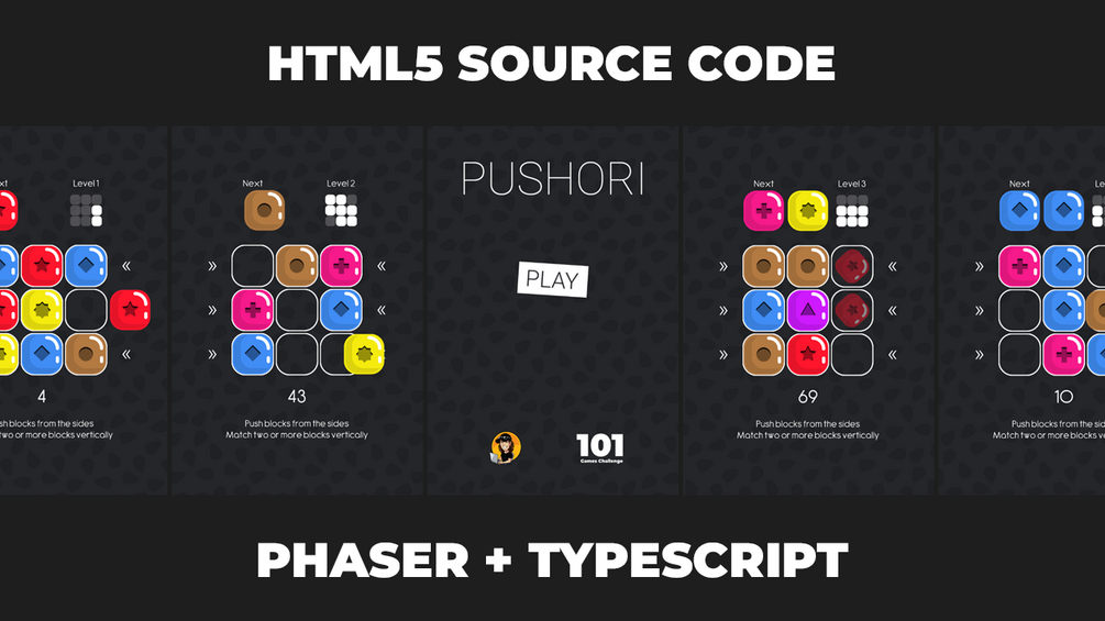 Moreover, you will get a TypeScript class to handle Pushori-like games which does not require dependencies, to use it in your future games.
